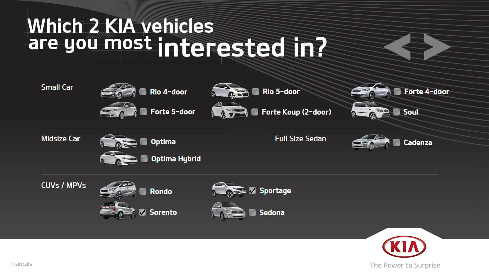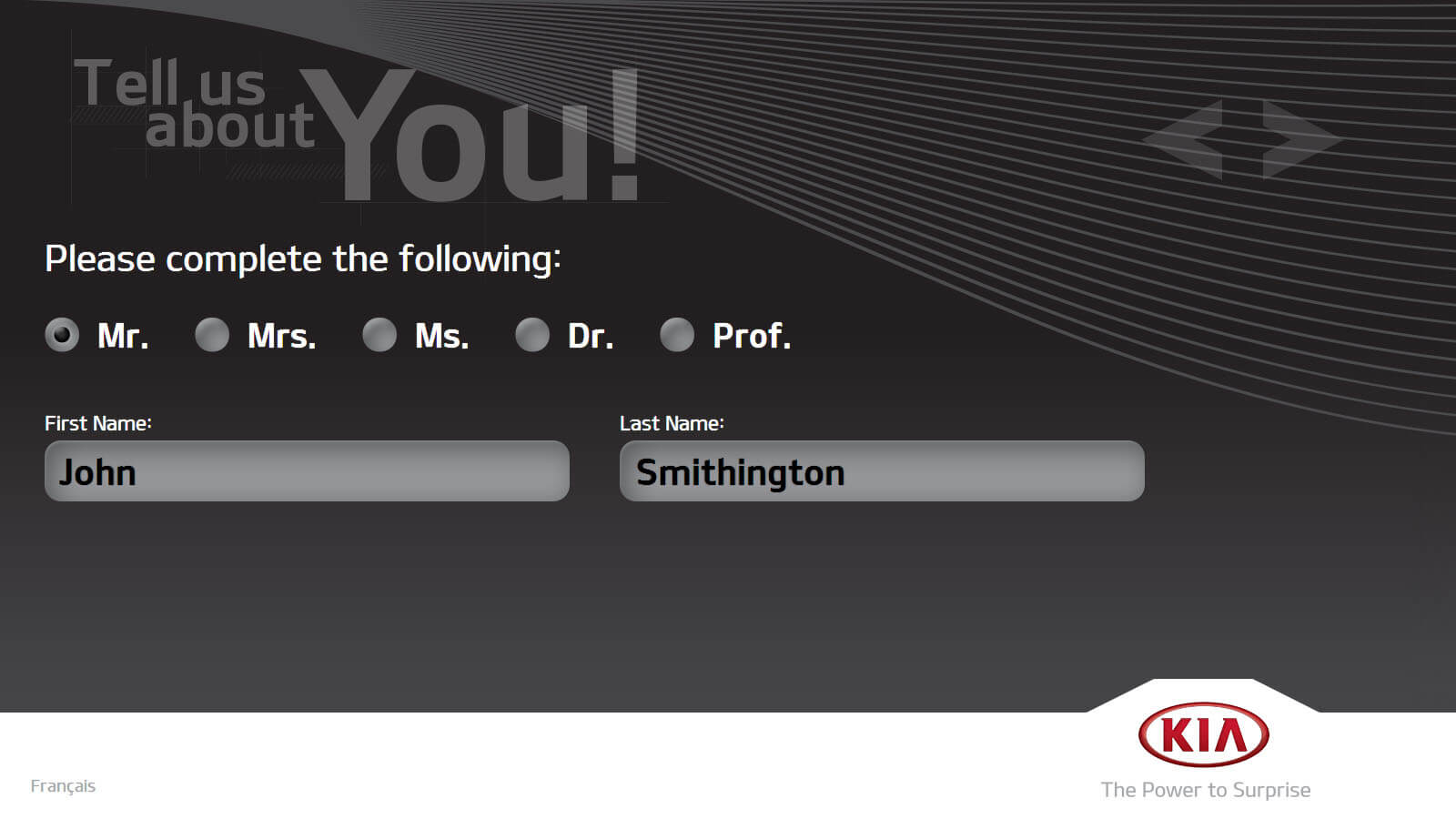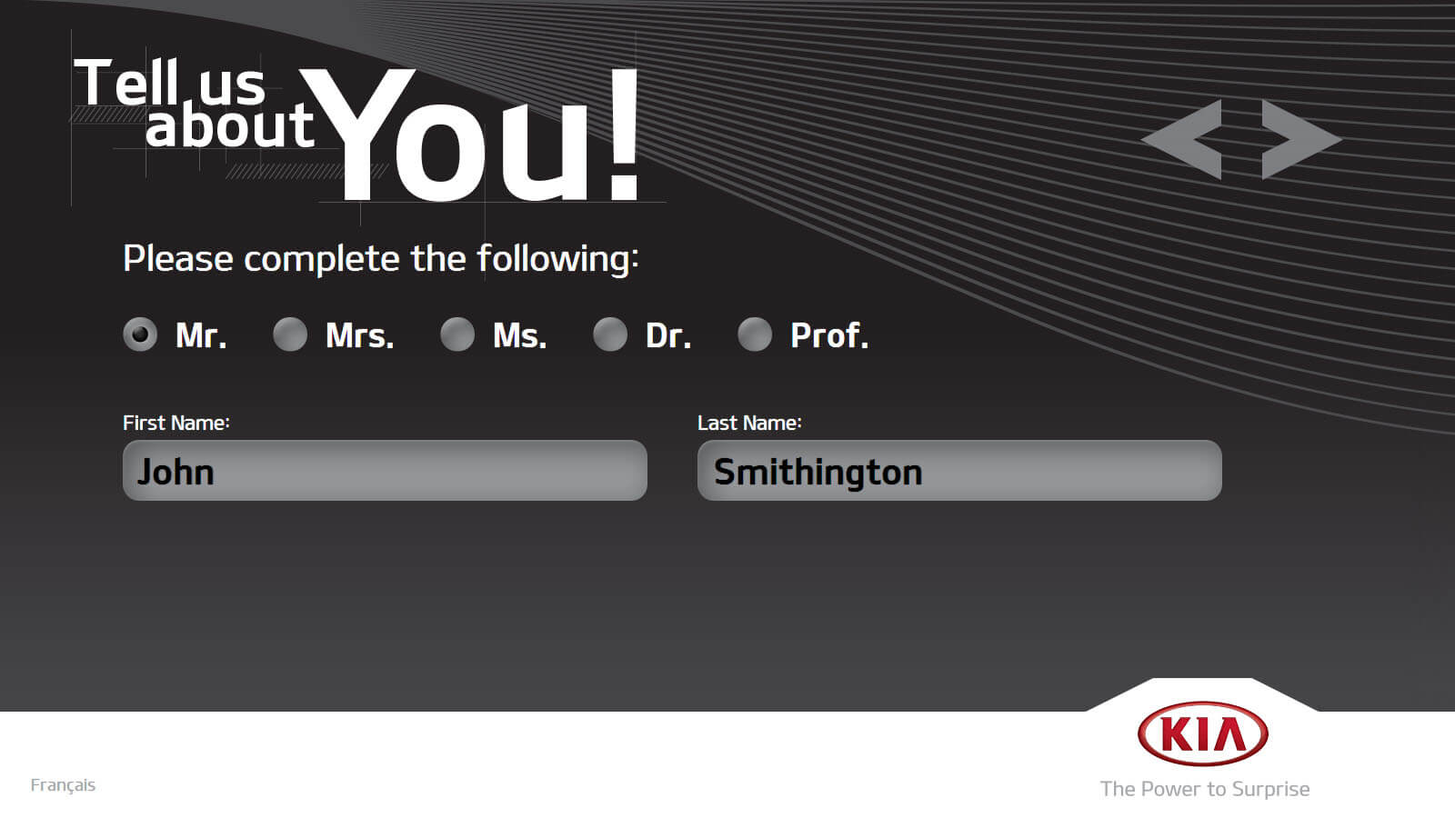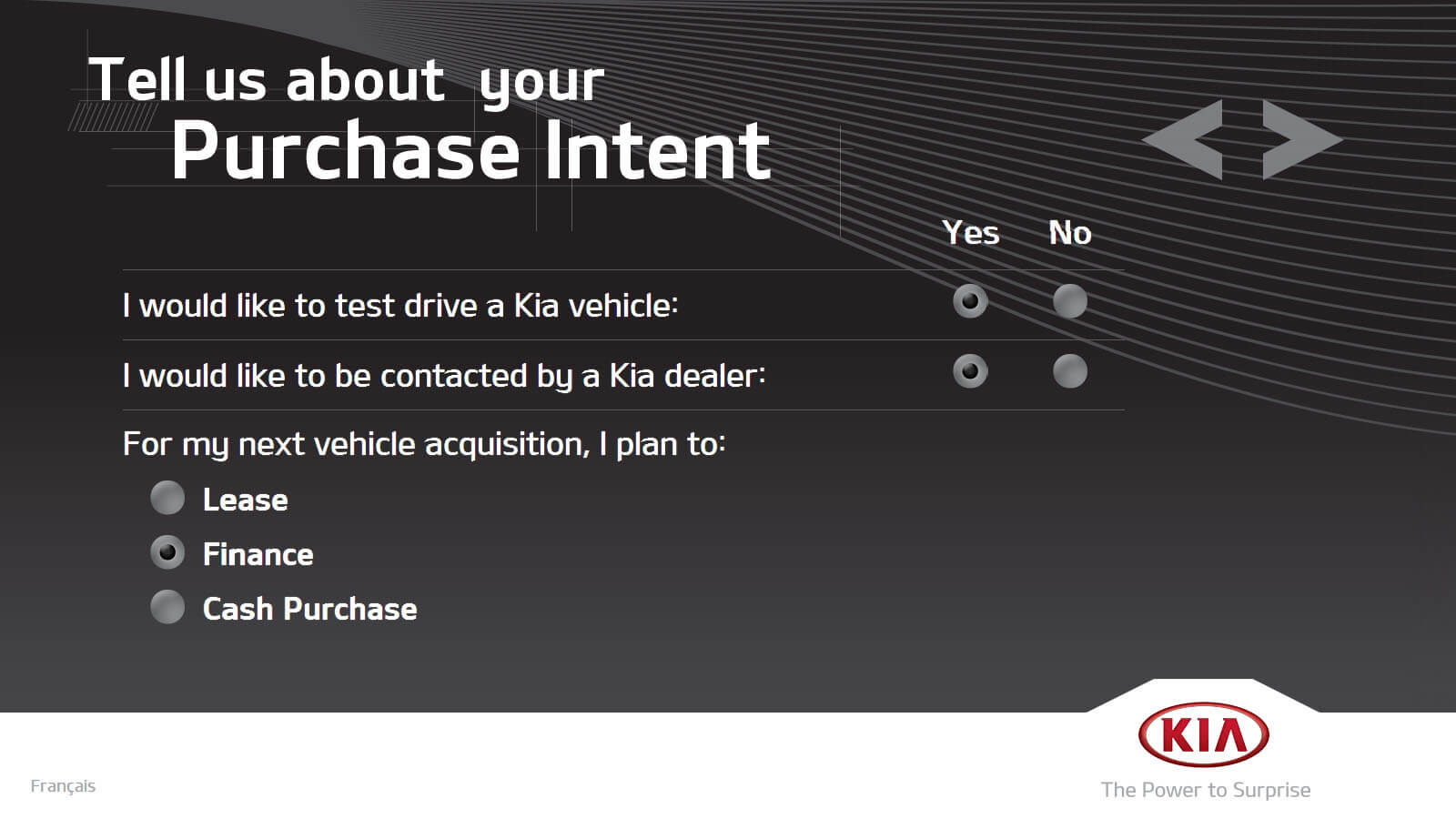 For the International Auto Show, Kia held a fun contest for Auto Show fans. The grand prize: a once-in-a-lifetime design experience in New York City. There were also 100's of instant prizes to be won. This kiosk guided users through a data capture sequence and then run an instant-prizing contest draw.