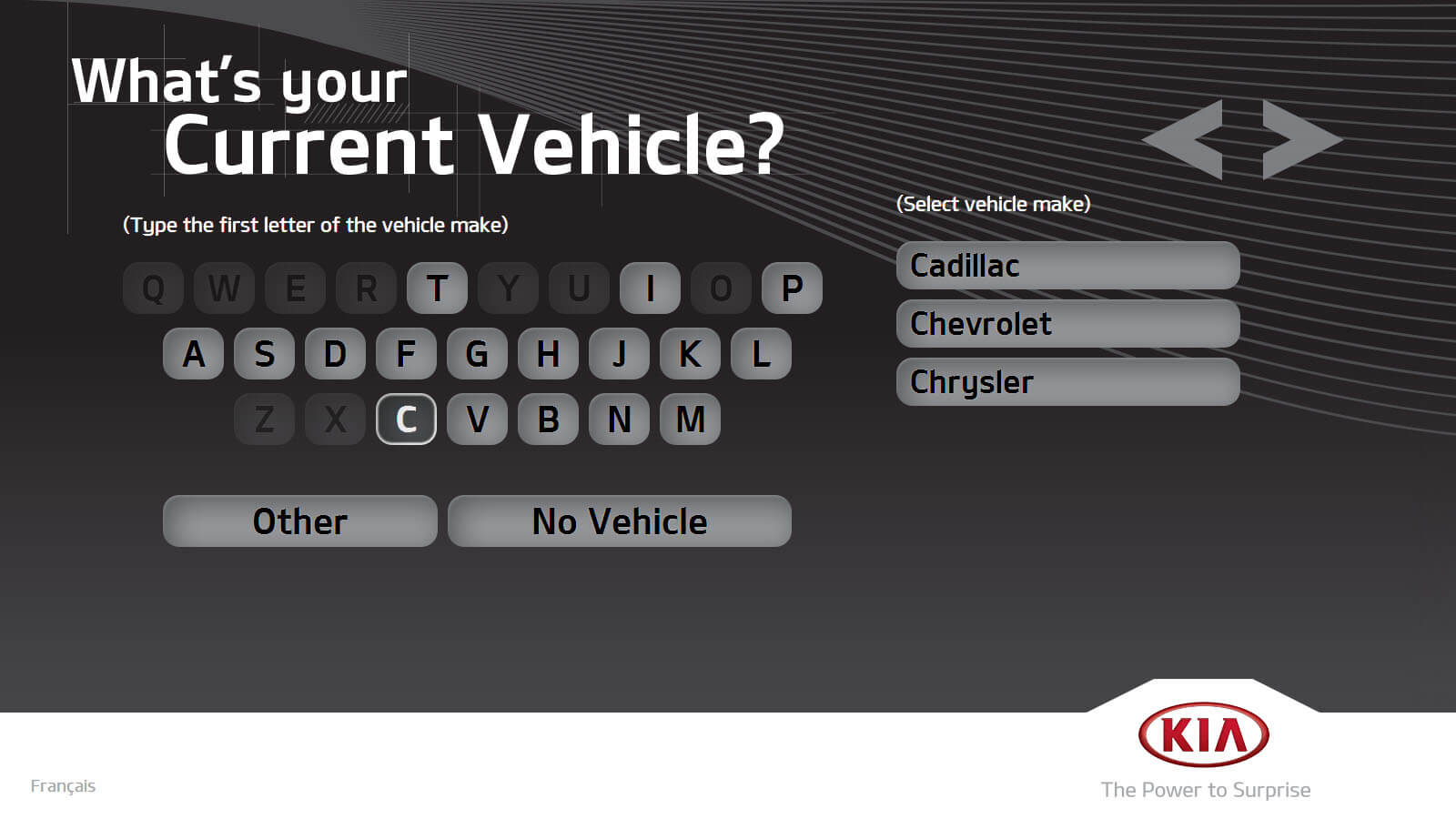 Because the kiosk was built using HTML5, it could also run on a series of networked, touch screen tablets. These tablets were used - by Kia sales reps - to bring the kiosk into the surrounding area. Thereby, extending Kia's reach well beyond their own tradeshow booth.