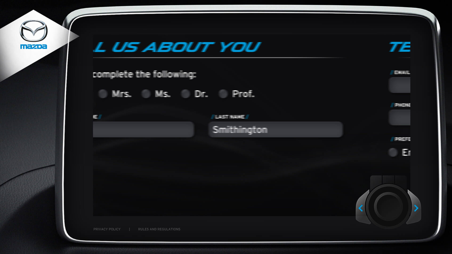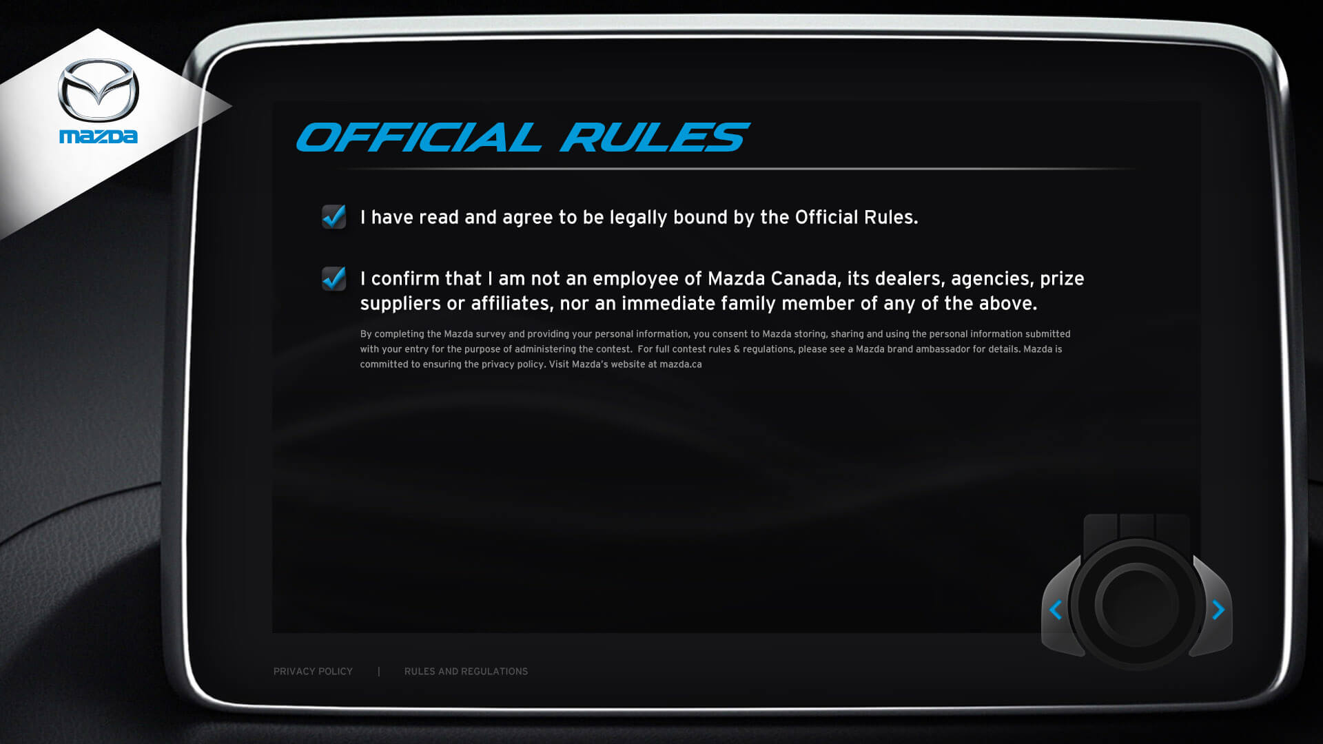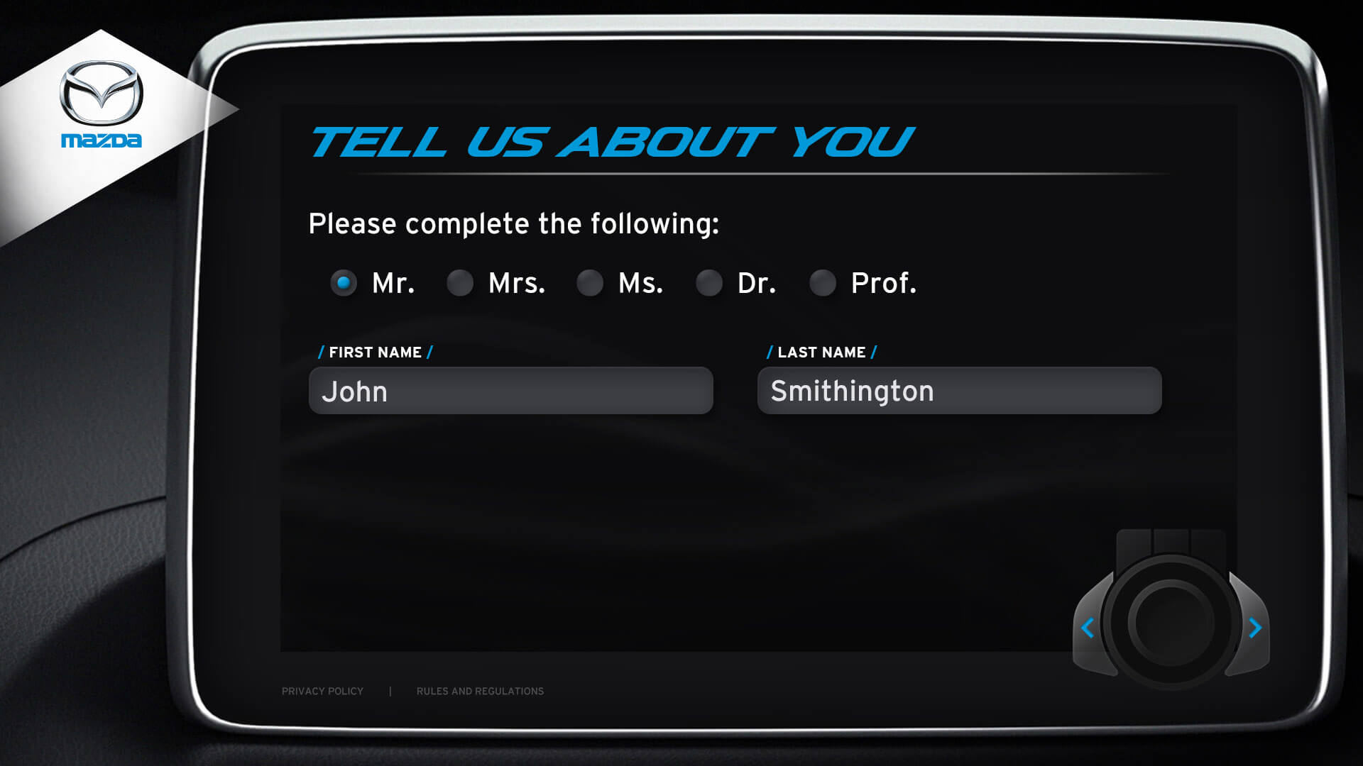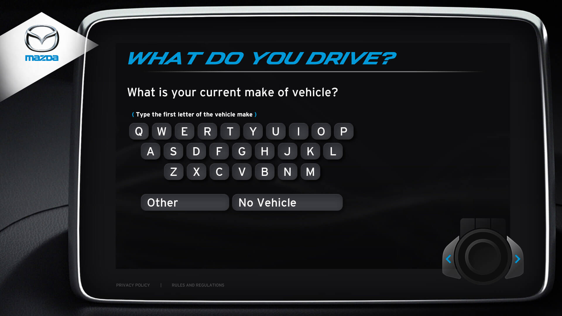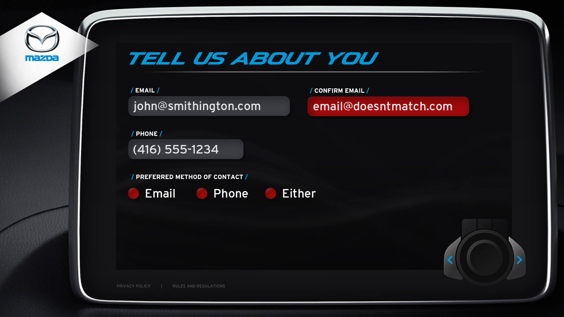 The vehicle lineup from Mazda is a pretty incredible selection of vehicles. I was honoured to design the kiosks user interface for Mazda's Auto Show. Elements from the redesigned Mazda3 cockpit were used in the design. The UI window is the same navigation interface from the Mazda3. The design for navigation controls (bottom right) was inspired by Mazda’s HMI Commander Switch – which resides in the center console of the Mazda3. Every possible screen was designed, which helped speed up development.