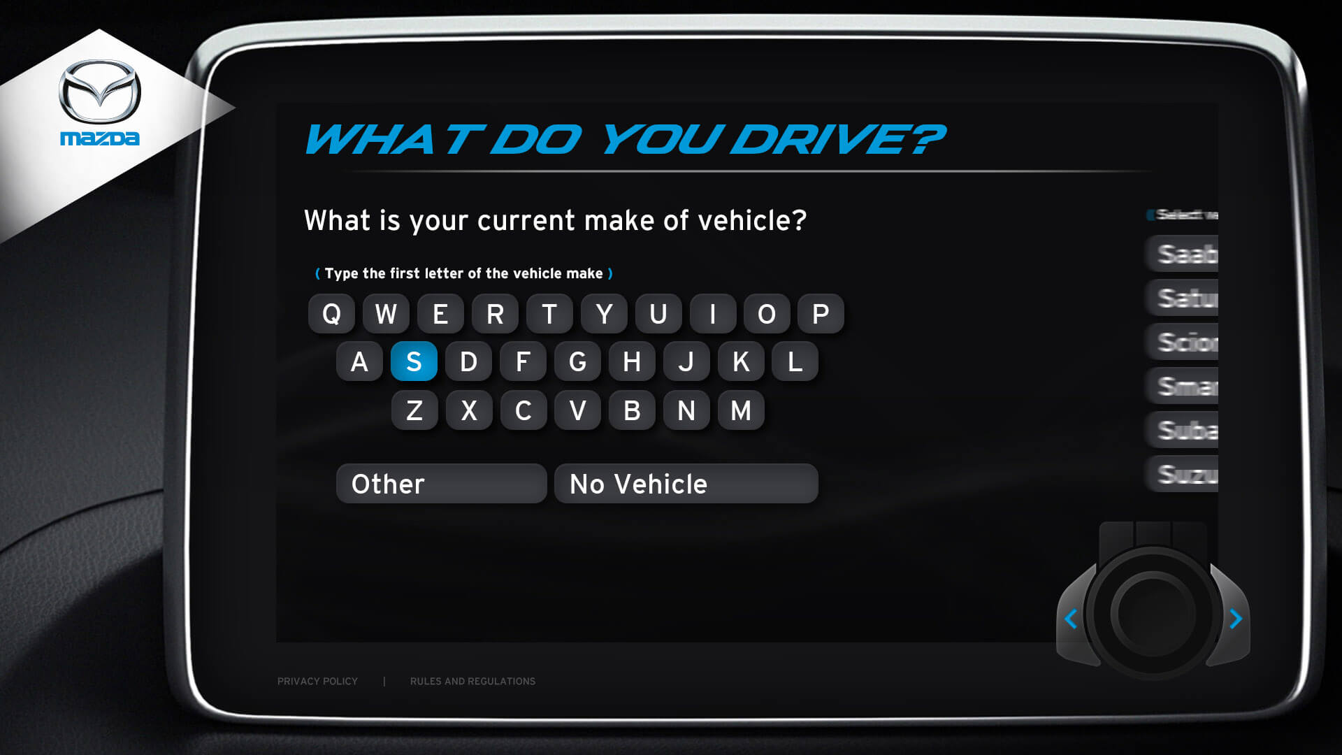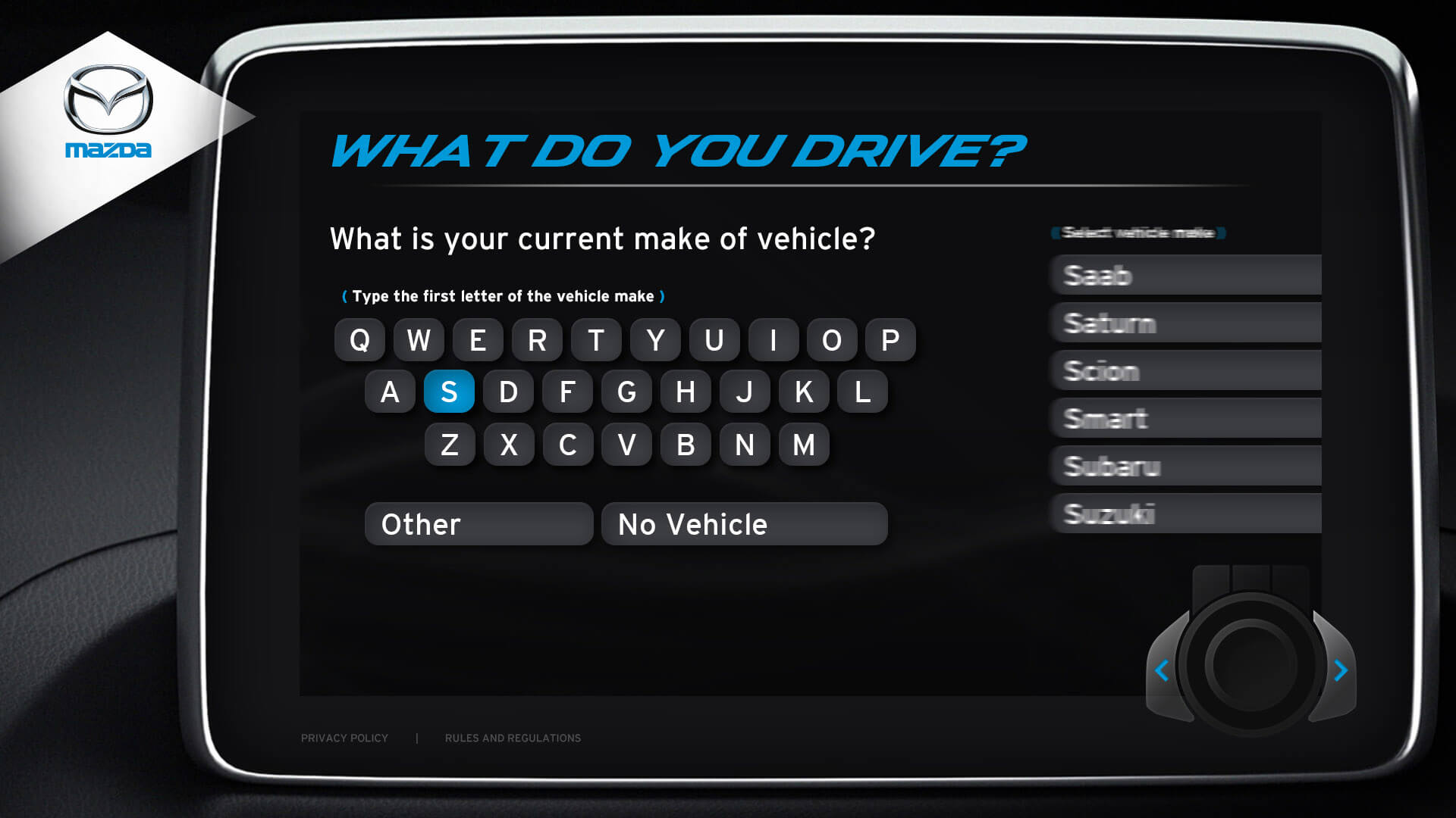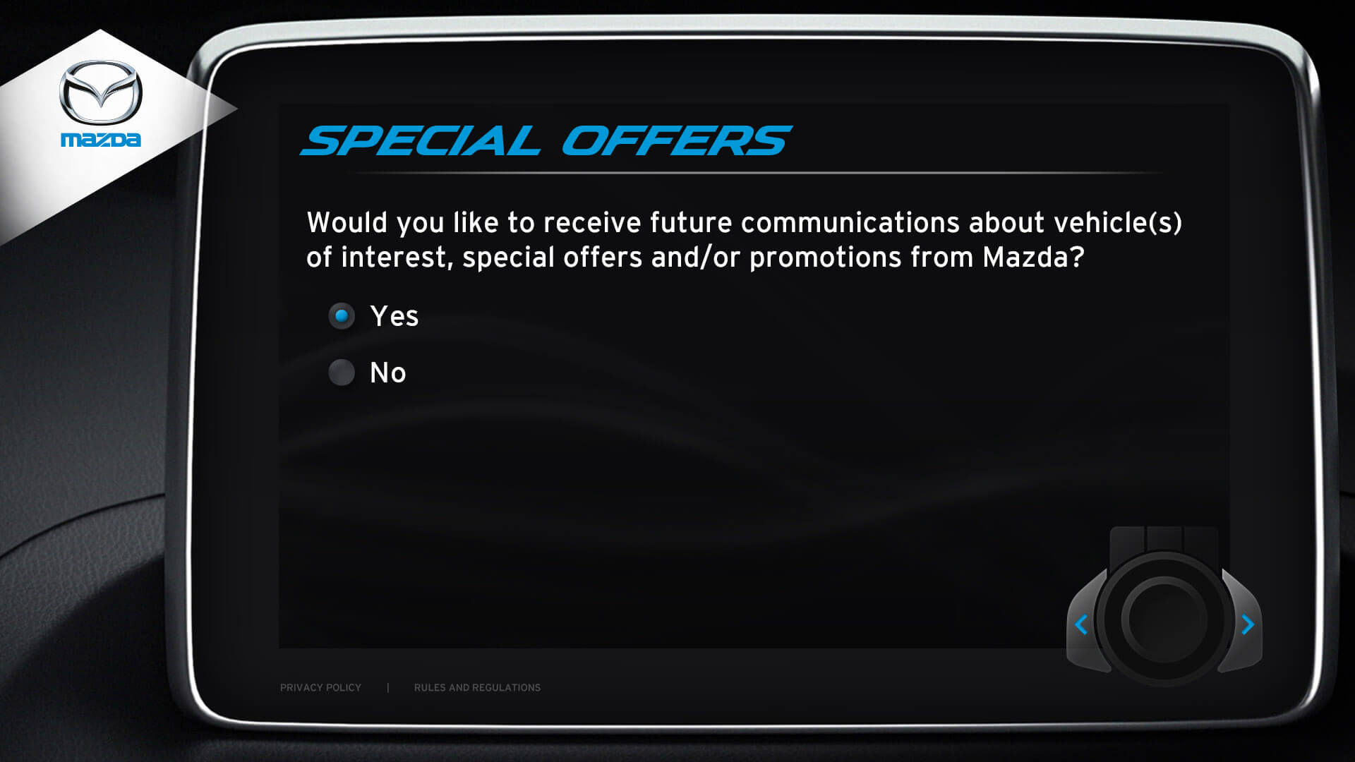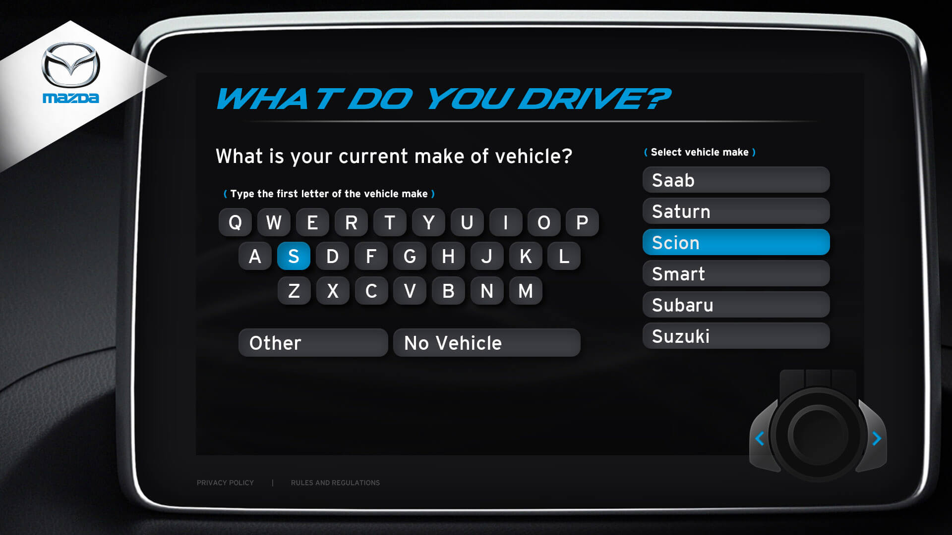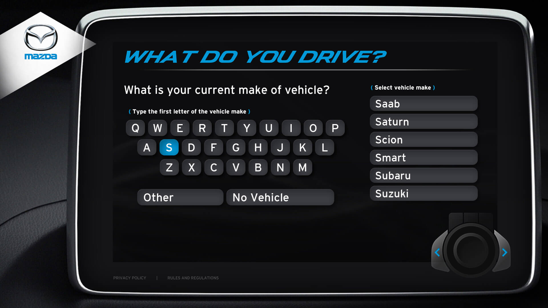 The vehicle lineup from Mazda is a pretty incredible selection of vehicles. I was honoured to design the kiosks user interface for Mazda's Auto Show. Elements from the redesigned Mazda3 cockpit were used in the design. The UI window is the same navigation interface from the Mazda3. The design for navigation controls (bottom right) was inspired by Mazda’s HMI Commander Switch – which resides in the center console of the Mazda3. Every possible screen was designed, which helped speed up development.