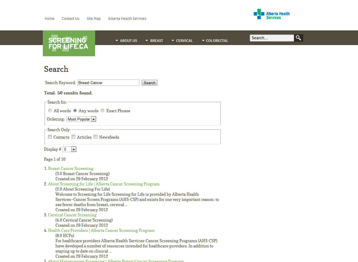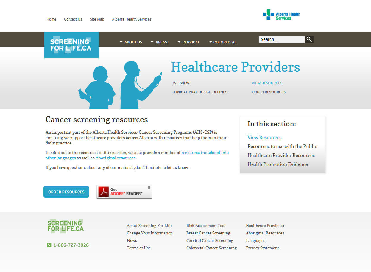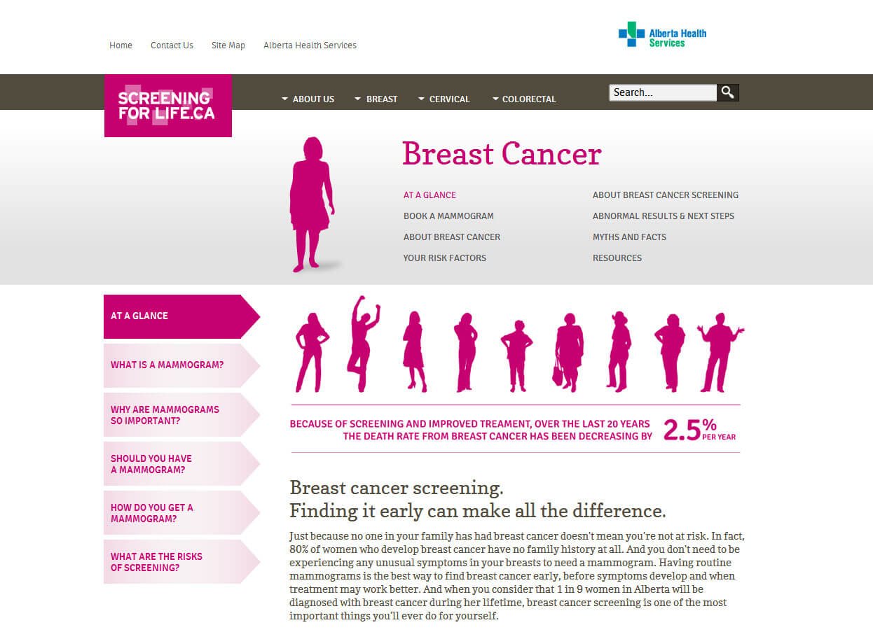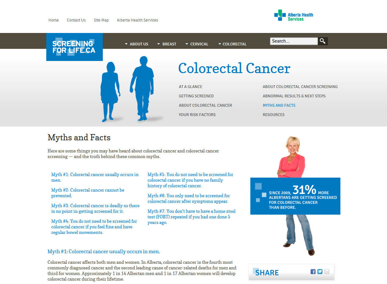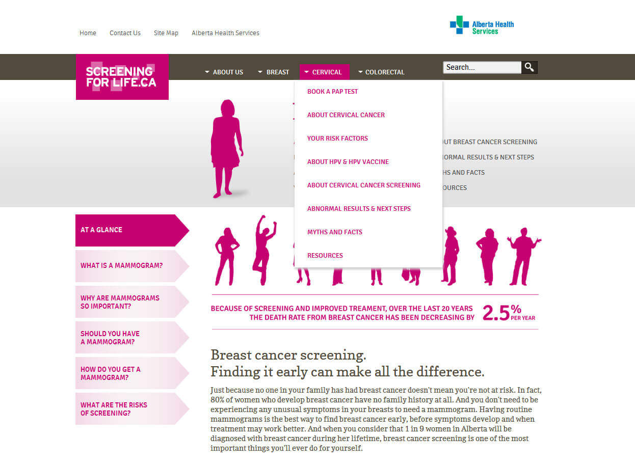 The new Screening For Life website provides information, education and support options for visitors. Cancer screening is important for us all. The Screening For Life site includes a fun way for visitors to take a full self-assessment test to see what risk factors they have and what they can do about them.