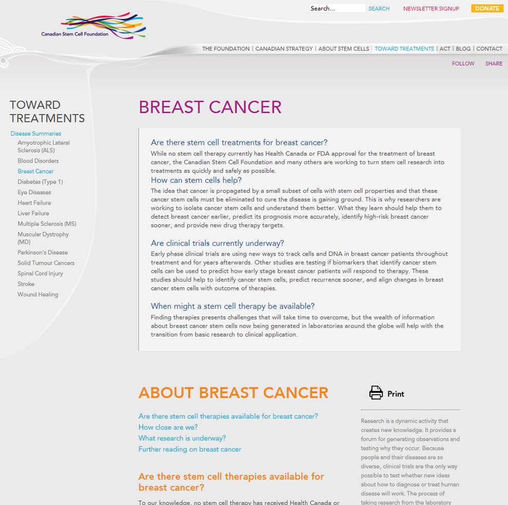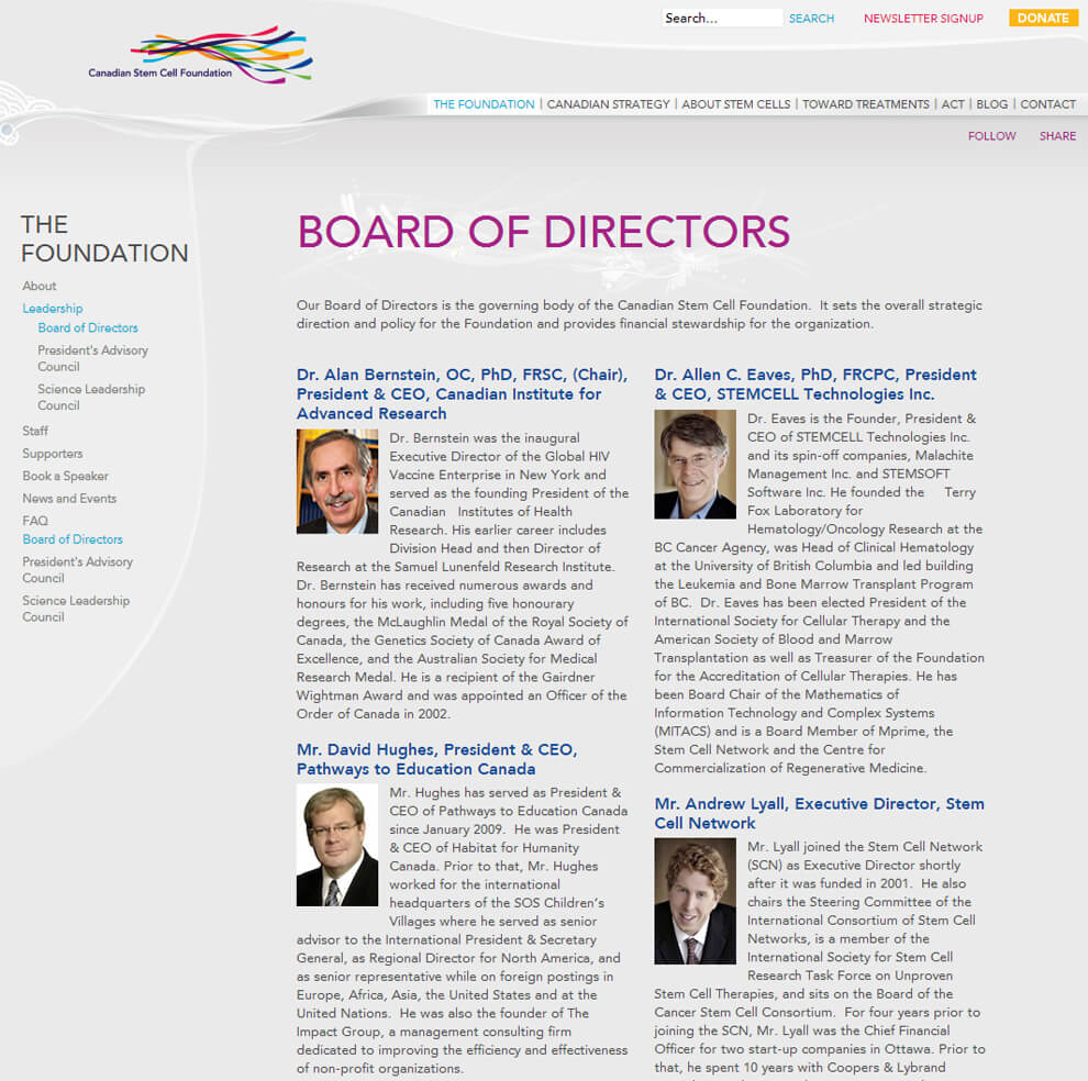 Stem Cell Foundation.ca Website